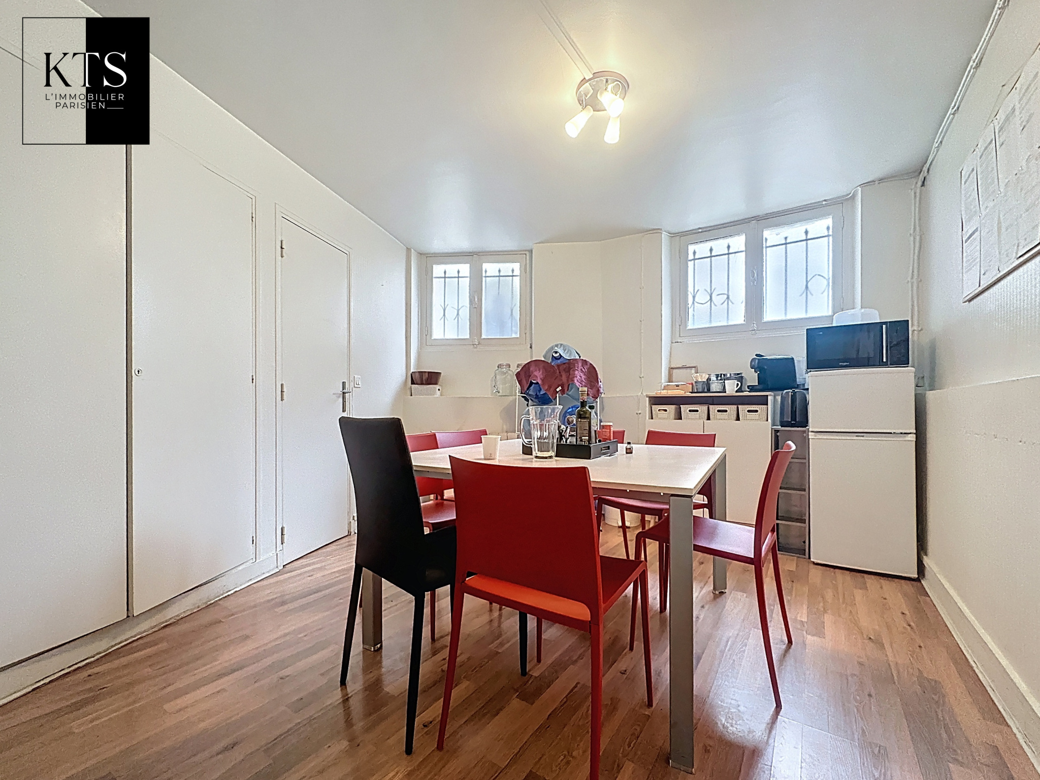 Paris (75014)EDGAR QUINET : Local commercial / Bureaux : D'une surface de 146.44m2 il est réparti comme suit : open space d'une surface d'environ 60m2, salle de pause avec coin kitchenette, deux bureaux dont un grand de 24m2, une spacieuse salle de réunion ou d'archives (34m2), wc et point d'eau. Le local est en parfait état. Plus de renseignements sur demande.