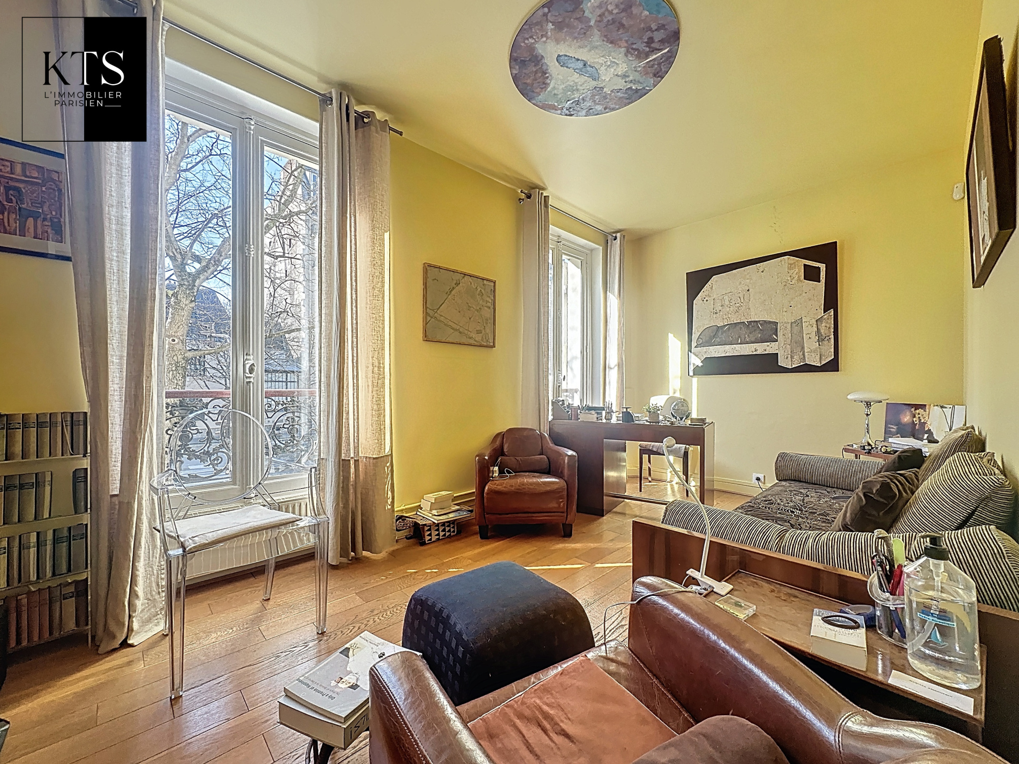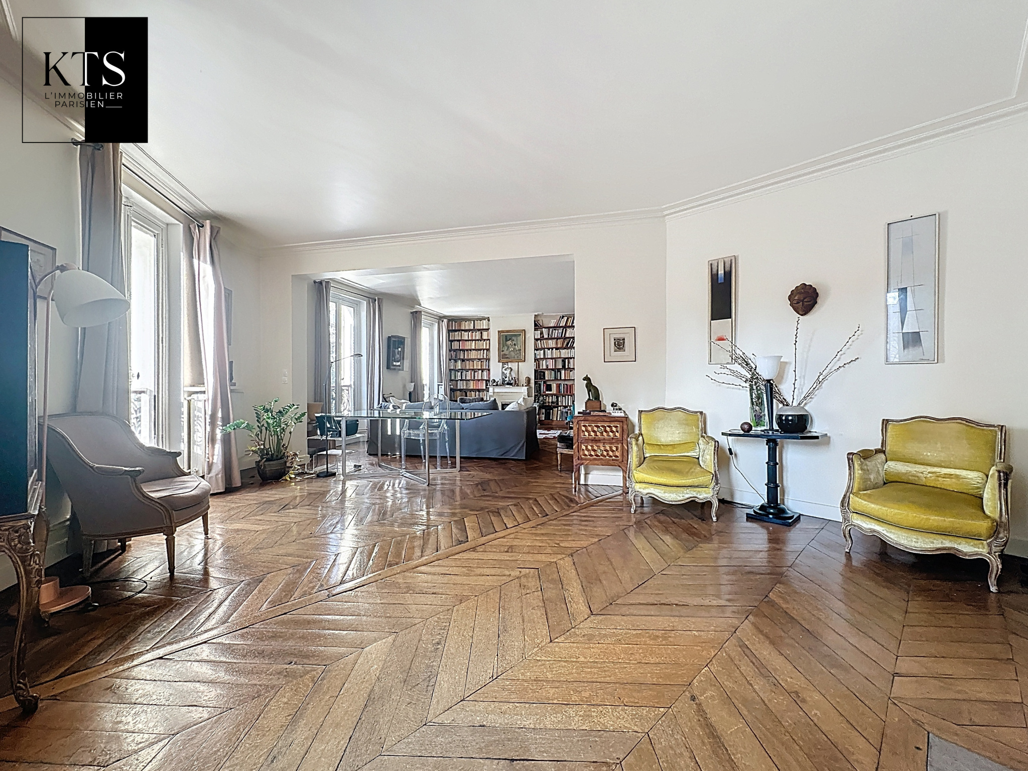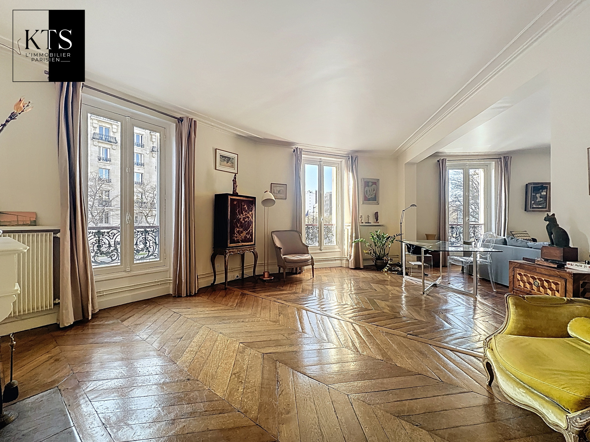 Paris (75014)Votre agence KTS L'Immobilier Parisien vous propose en exclusivité, dans un bel immeuble de 1860, au premier étage avec ascenseur, un appartement baigné de lumière avec une vue totalement dégagée. Il comptabilise sept pièces totalisant une surface de 166,53 m2 au sol et 163,22m2 Loi Carrez. Il est composé comme suit : une entrée avec rangements, une cuisine indépendante aménagée et équipée, une salle à manger (ou quatrième chambre), un triple séjour 51,45m2) exposé Sud-Ouest avec vue dégagée en partie en rotonde, trois chambres dont une Master bedroom avec sa salle de bains et son grand dressing, une salle d'eau avec wc ainsi qu'un wc indépendant. Les atouts de l'appartement sont les suivants : charme de l'ancien, parfait état, vue dégagée, lumineux et jouissant d'un plan optimisé permettant une quatrième chambre ou une pièce de vie de 64,79m2. Trois caves complètent ce bien.