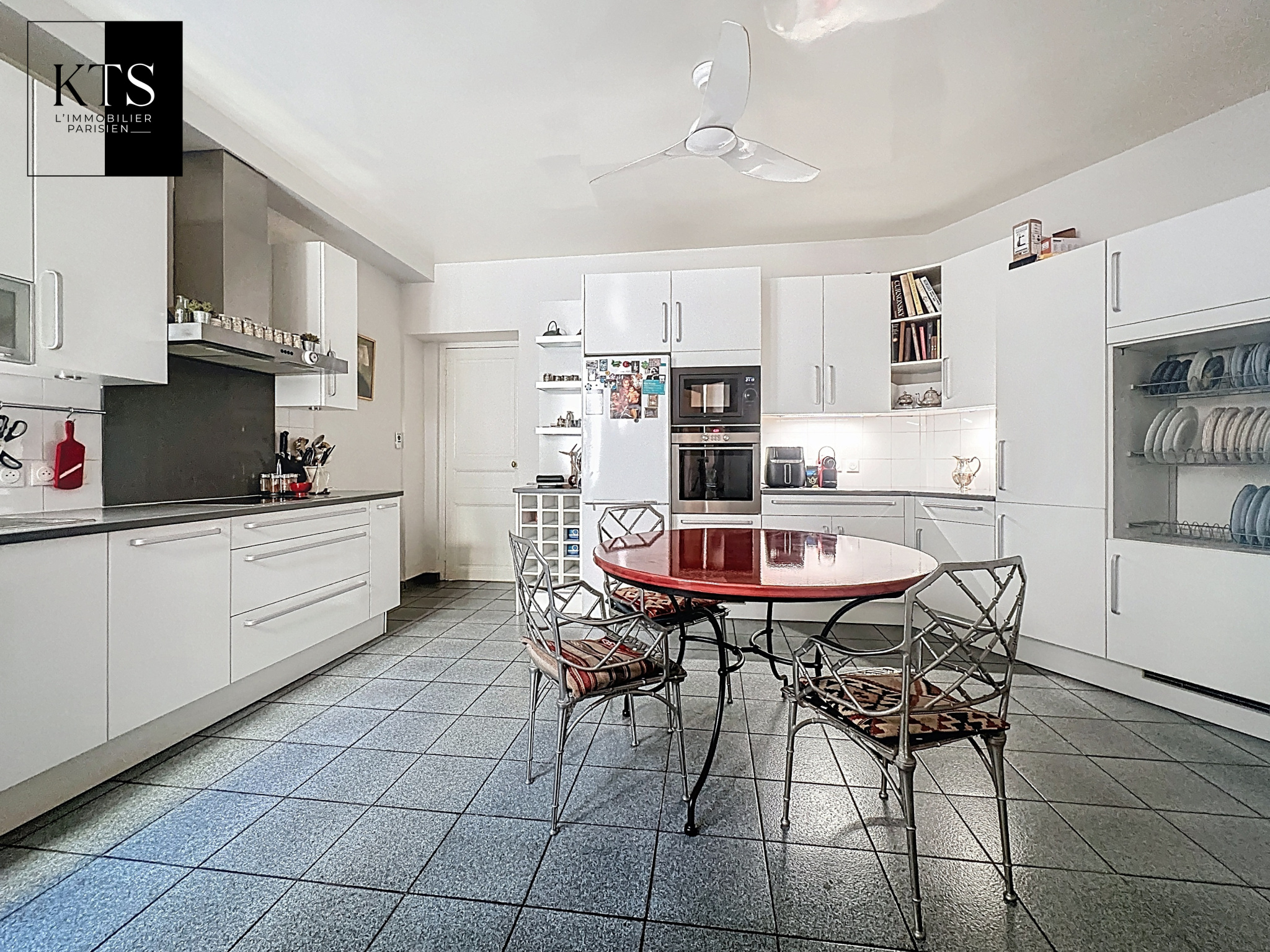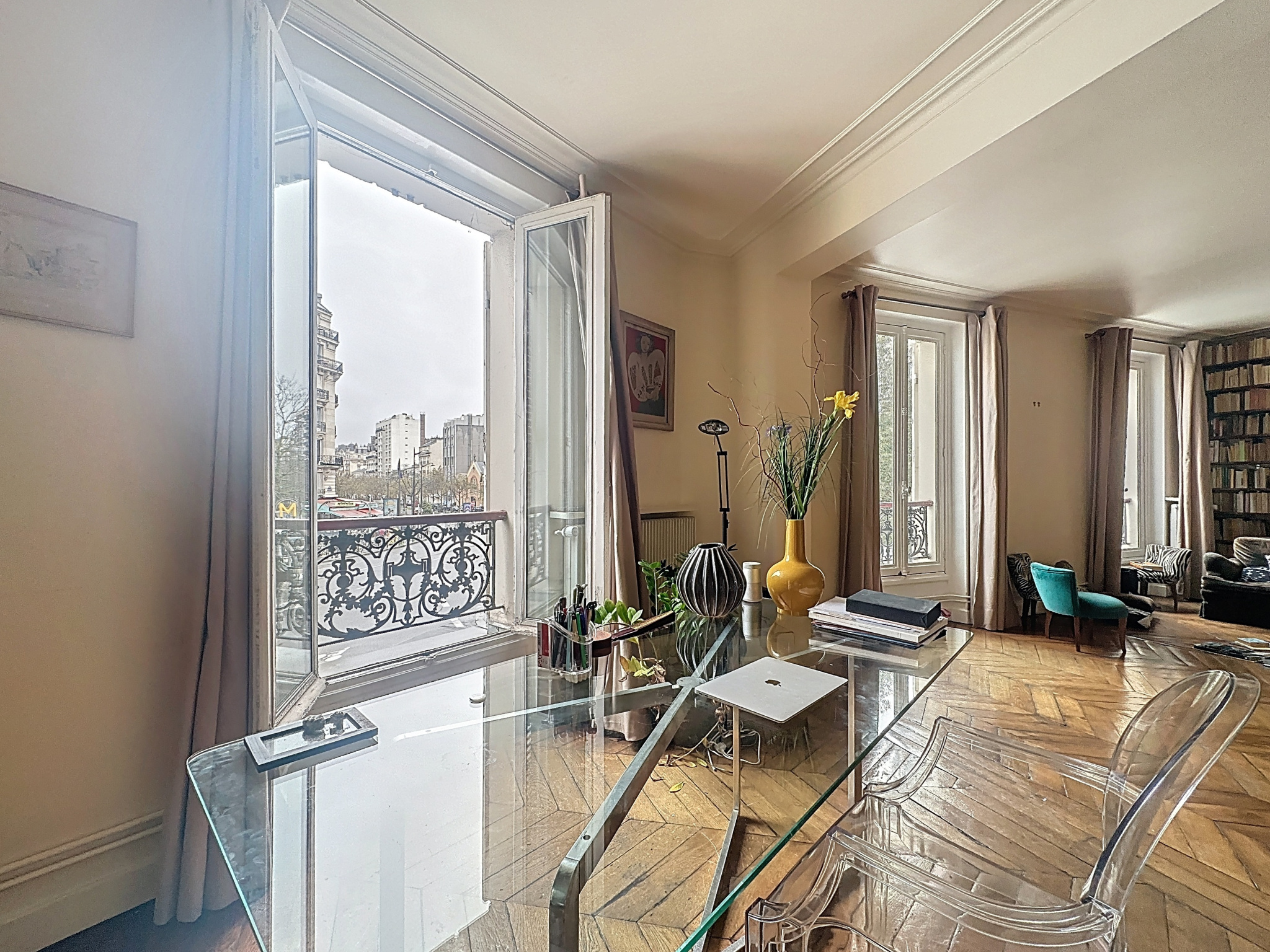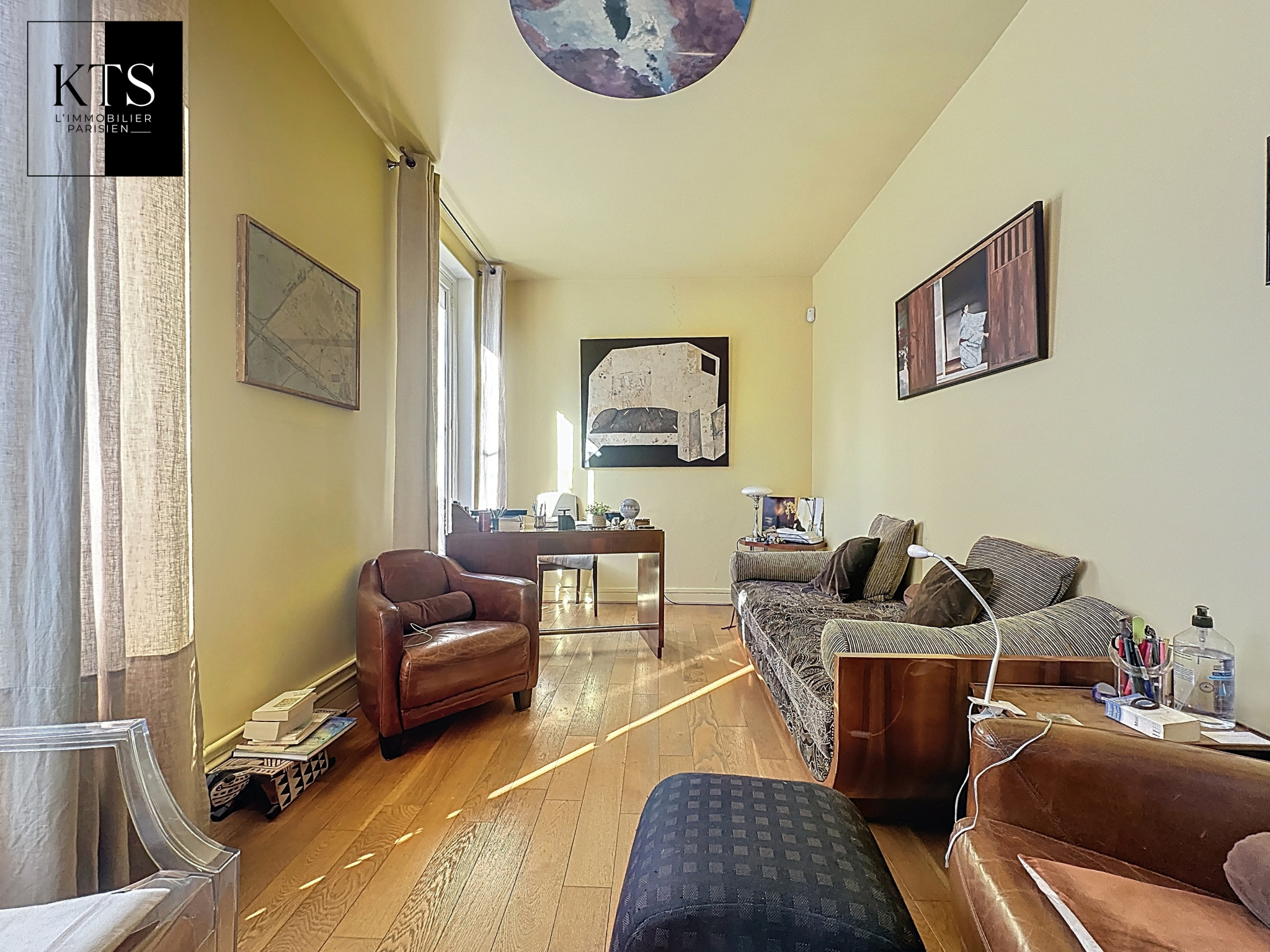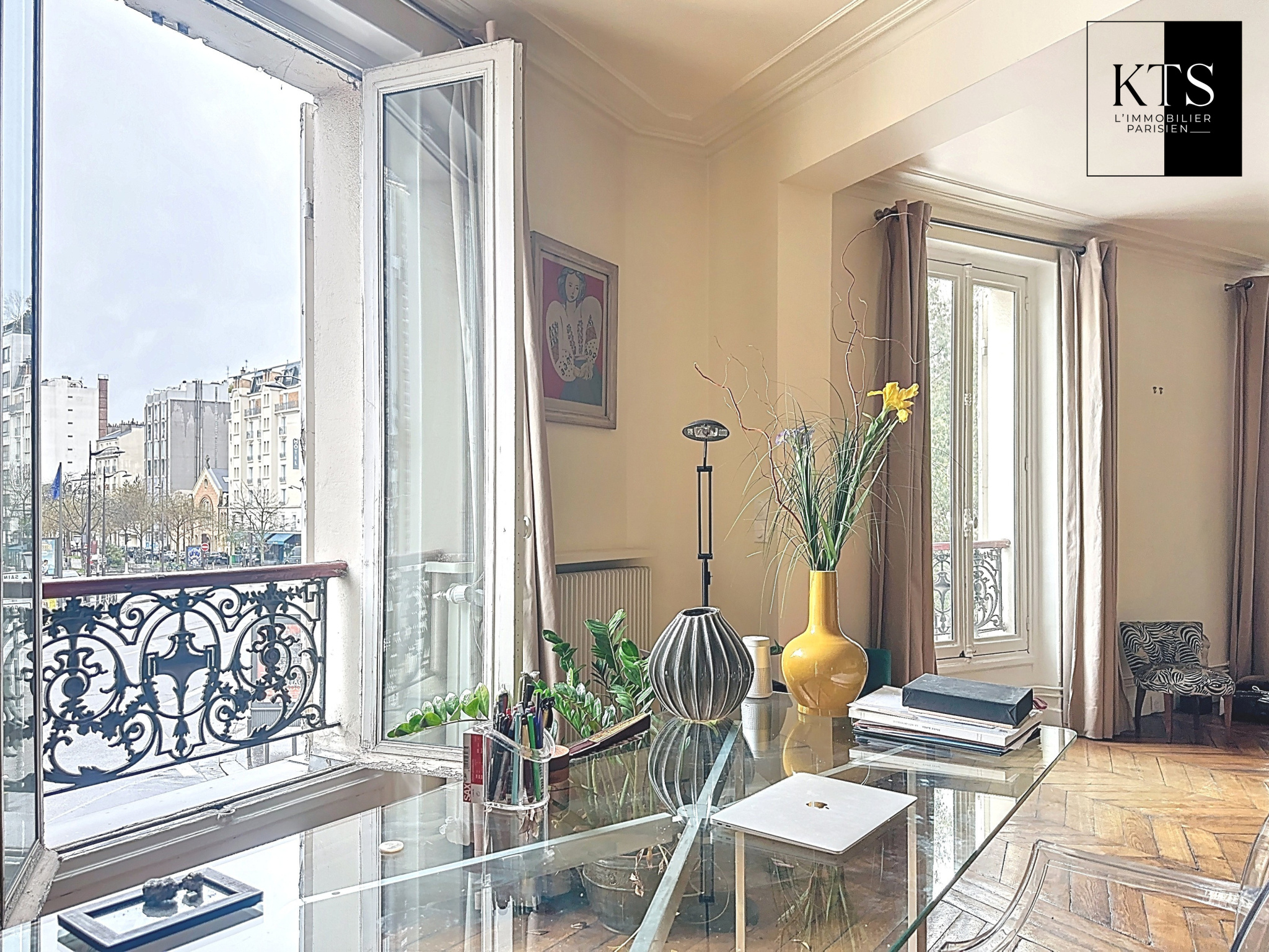 Paris (75014)Votre agence KTS L'Immobilier Parisien vous propose en exclusivité, dans un bel immeuble de 1860, au premier étage avec ascenseur, un appartement baigné de lumière avec une vue totalement dégagée. Il comptabilise sept pièces totalisant une surface de 166,53 m2 au sol et 163,22m2 Loi Carrez. Il est composé comme suit : une entrée avec rangements, une cuisine indépendante aménagée et équipée, une salle à manger (ou quatrième chambre), un triple séjour 51,45m2) exposé Sud-Ouest avec vue dégagée en partie en rotonde, trois chambres dont une Master bedroom avec sa salle de bains et son grand dressing, une salle d'eau avec wc ainsi qu'un wc indépendant. Les atouts de l'appartement sont les suivants : charme de l'ancien, parfait état, vue dégagée, lumineux et jouissant d'un plan optimisé permettant une quatrième chambre ou une pièce de vie de 64,79m2. Trois caves complètent ce bien.